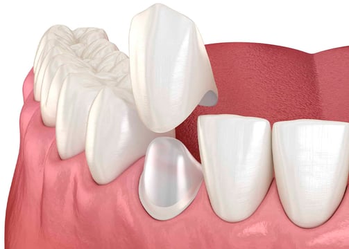 Un puente dental es una prótesis fija que reemplaza uno o más dientes perdidos.